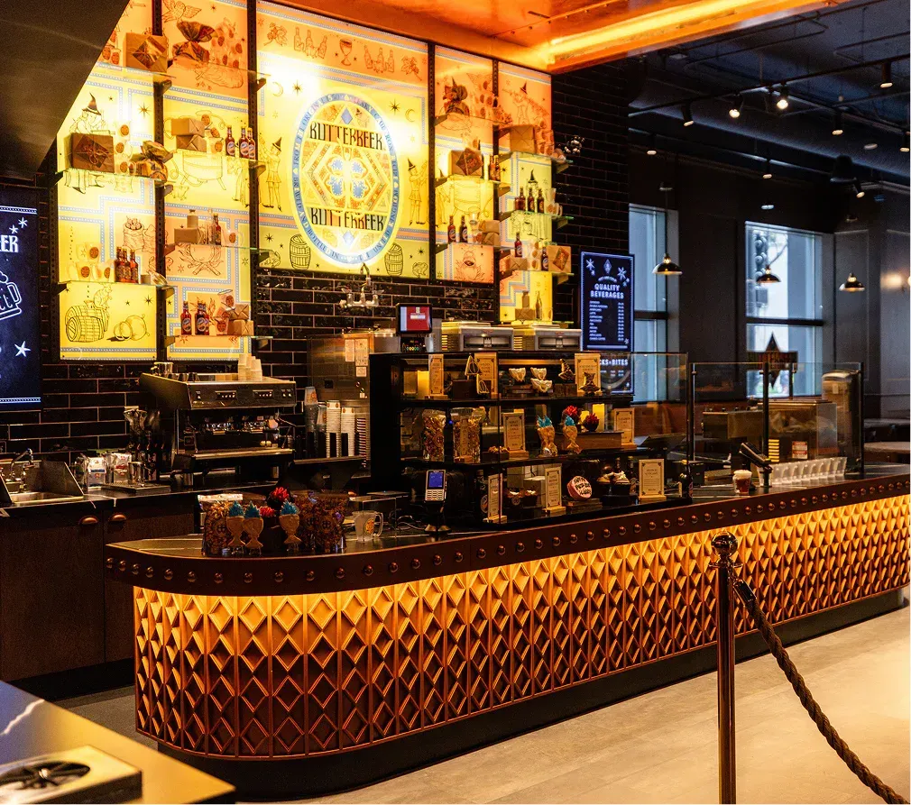At 12,300 square feet, the immersive retail destination is themed around Harry Potter and the Goblet of Fire and includes interactive experiences, exclusive merchandise, and the largest Butterbeer Bar in the country.