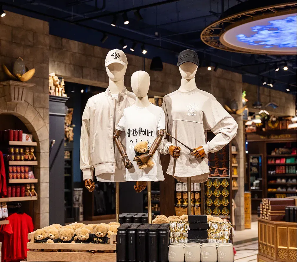 Shoppers will also find Chicago-exclusive merchandise, including plush bears, spirit jerseys, mugs, and tote bags. Classic items like wands, robes, and personalized Hogwarts acceptance letters are also available.